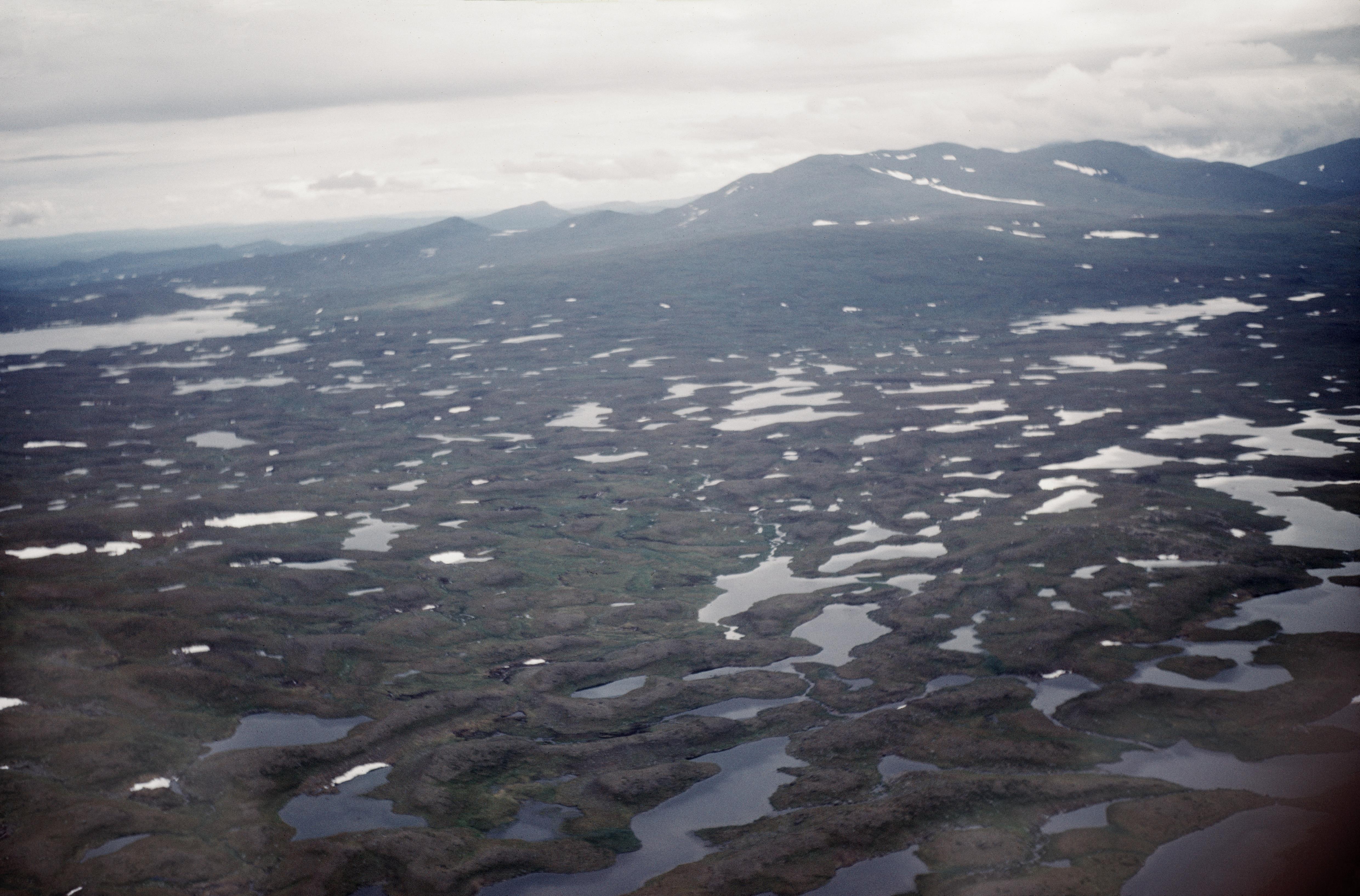 Beskrivning: Sjö- och myrområdet Sturjie. Sjön Autojaure (Aavtjoejaevrie) till vänster i bildens kant. I fjällområdet vid Autojaure en förvaringsgrop RAÄnr Vilhelmina 2496. Uppe till höger fjällområdet Saagke och Norra Borgafjällen (Böörkeje). Bilden är tagen mot (väderstreck): NO