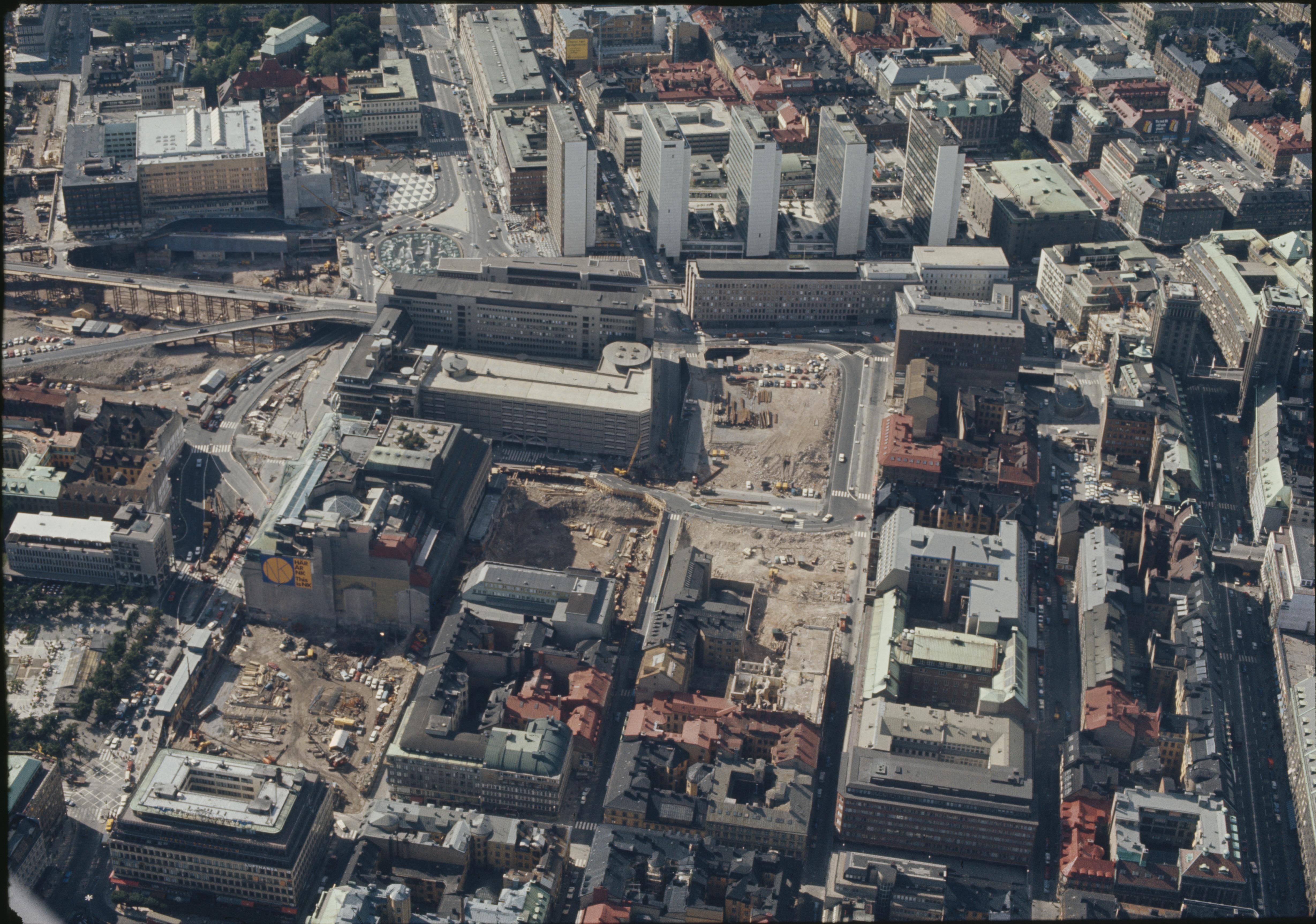 Riksdagshusbygget, Hötorgsskraporna, Sergels torg och Brunkebergstorg. City. Rivningar.