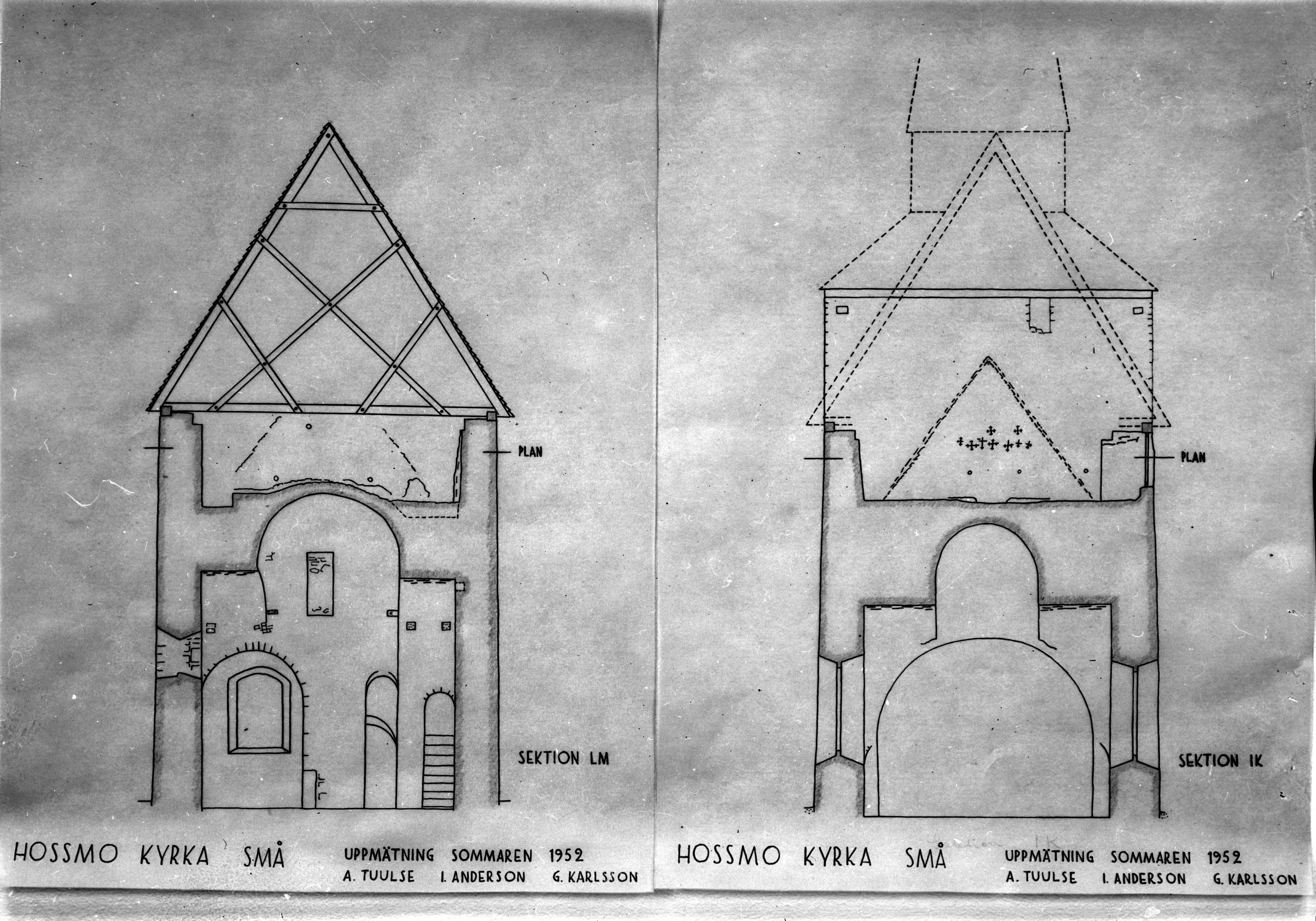 Beskrivning: Långhusets östligaste delar, tvärsnitt, enligt uppmätning 1952. (förstoring)