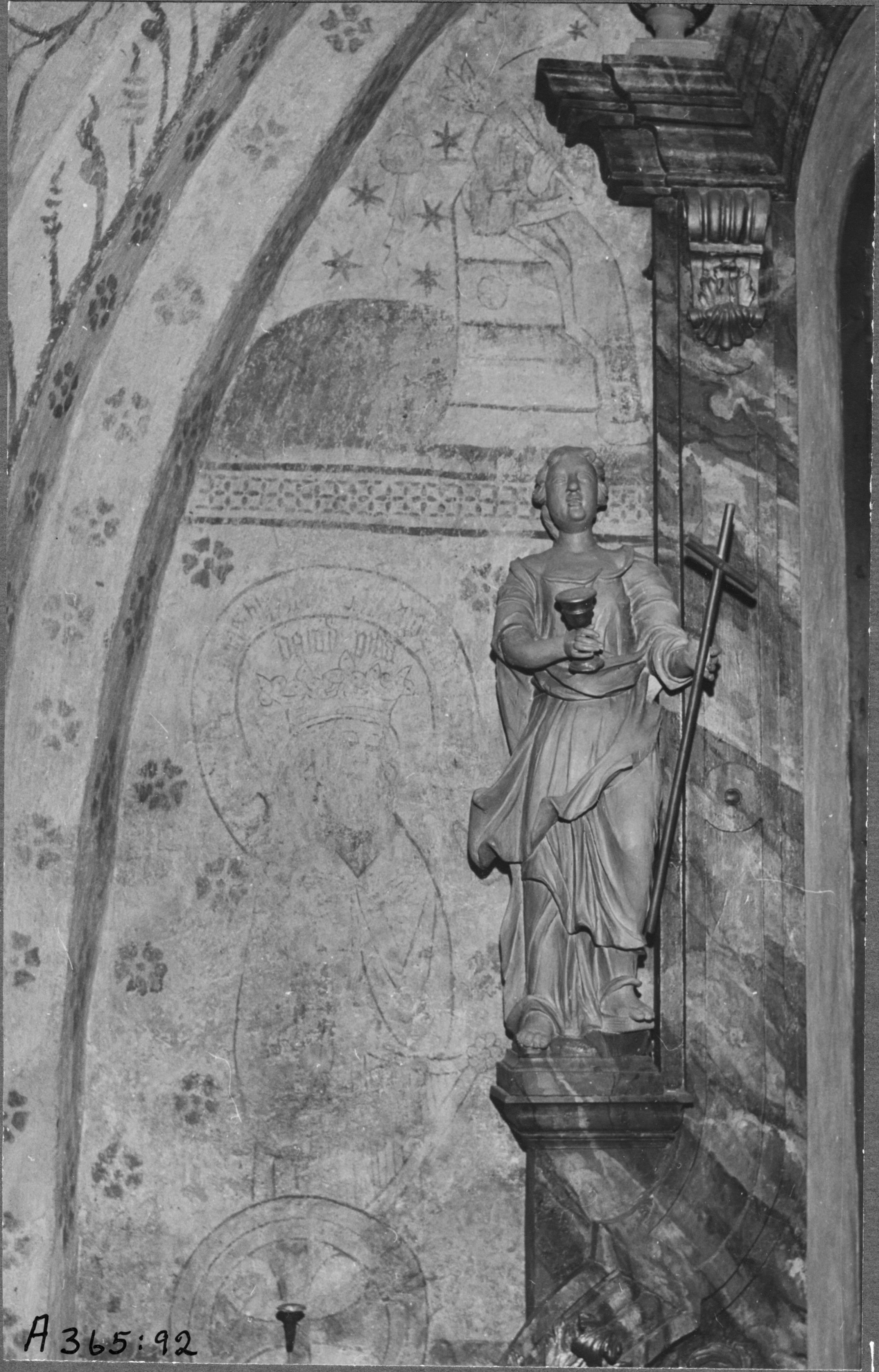 Beskrivning: Altaret, profilör, Tron med kalk och korsstav.