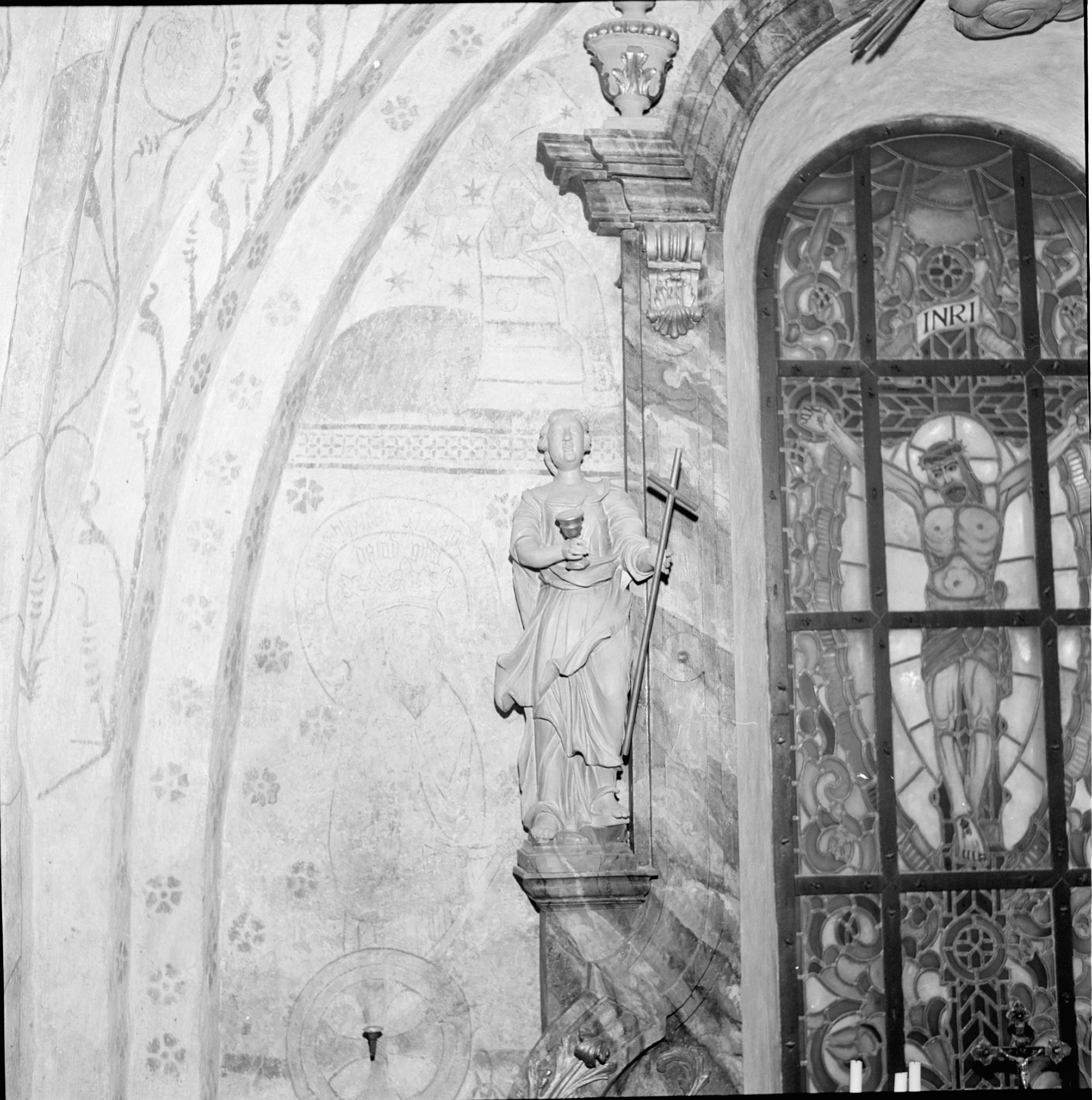 Beskrivning: Altaret, profilör, Tron med kalk och korsstav.
