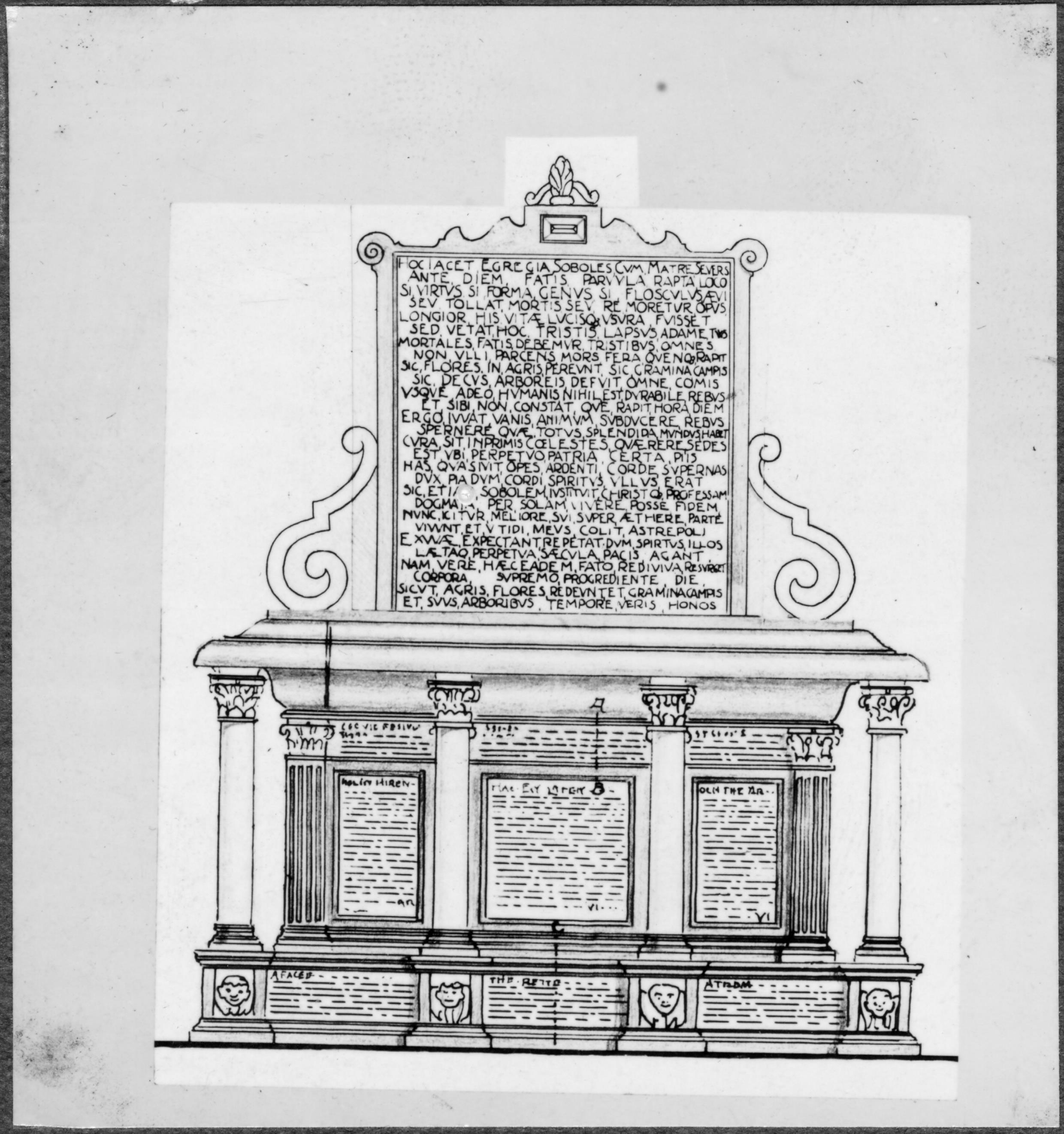 Beskrivning: Gravmonument, Karl IX:s sarkofag, ena kortsidan med gavelhällen på ursprunglig plats.