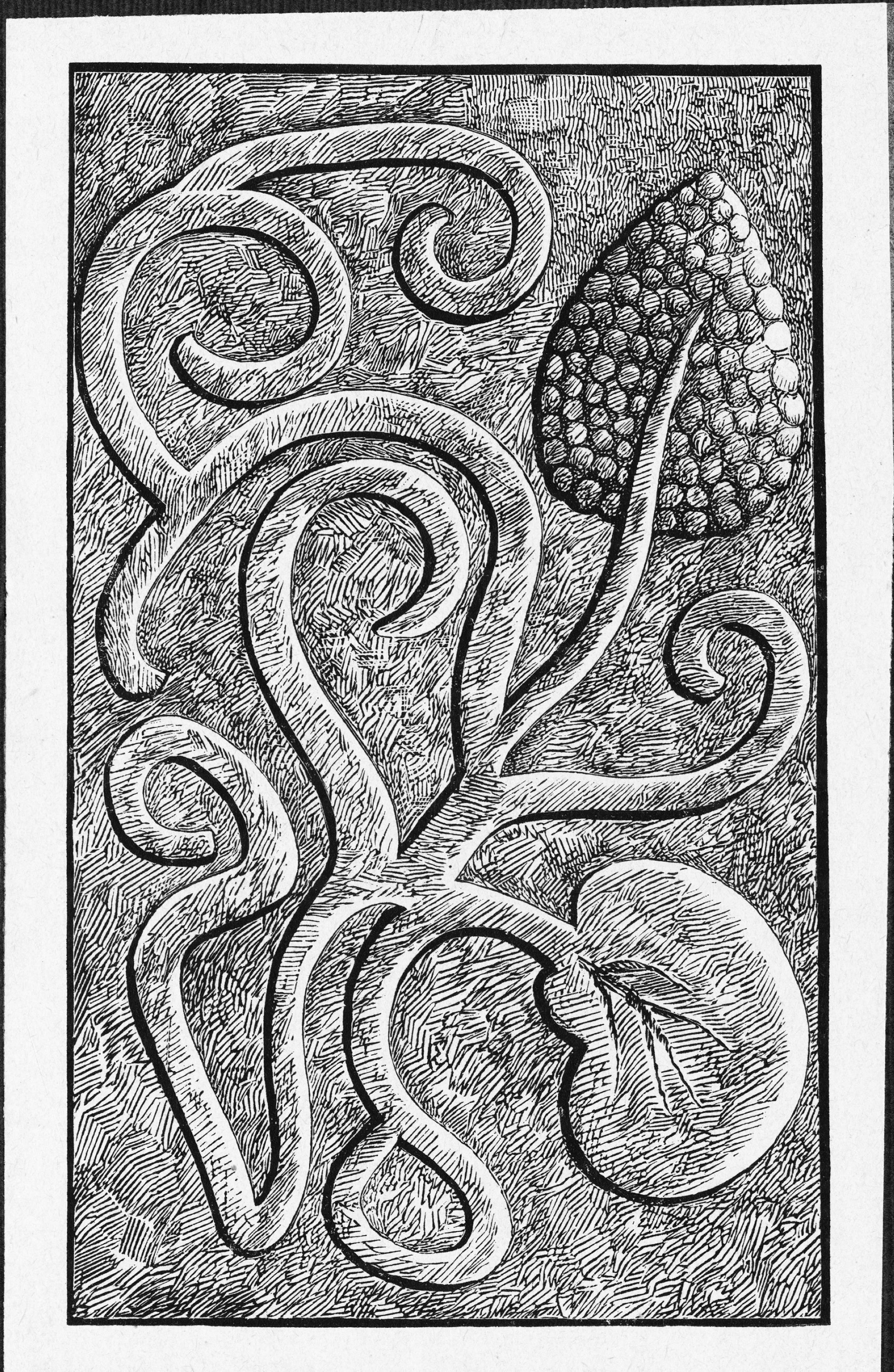 Beskrivning: Dopfunt, 1100-talet, detalj av cuppan. Tryck.