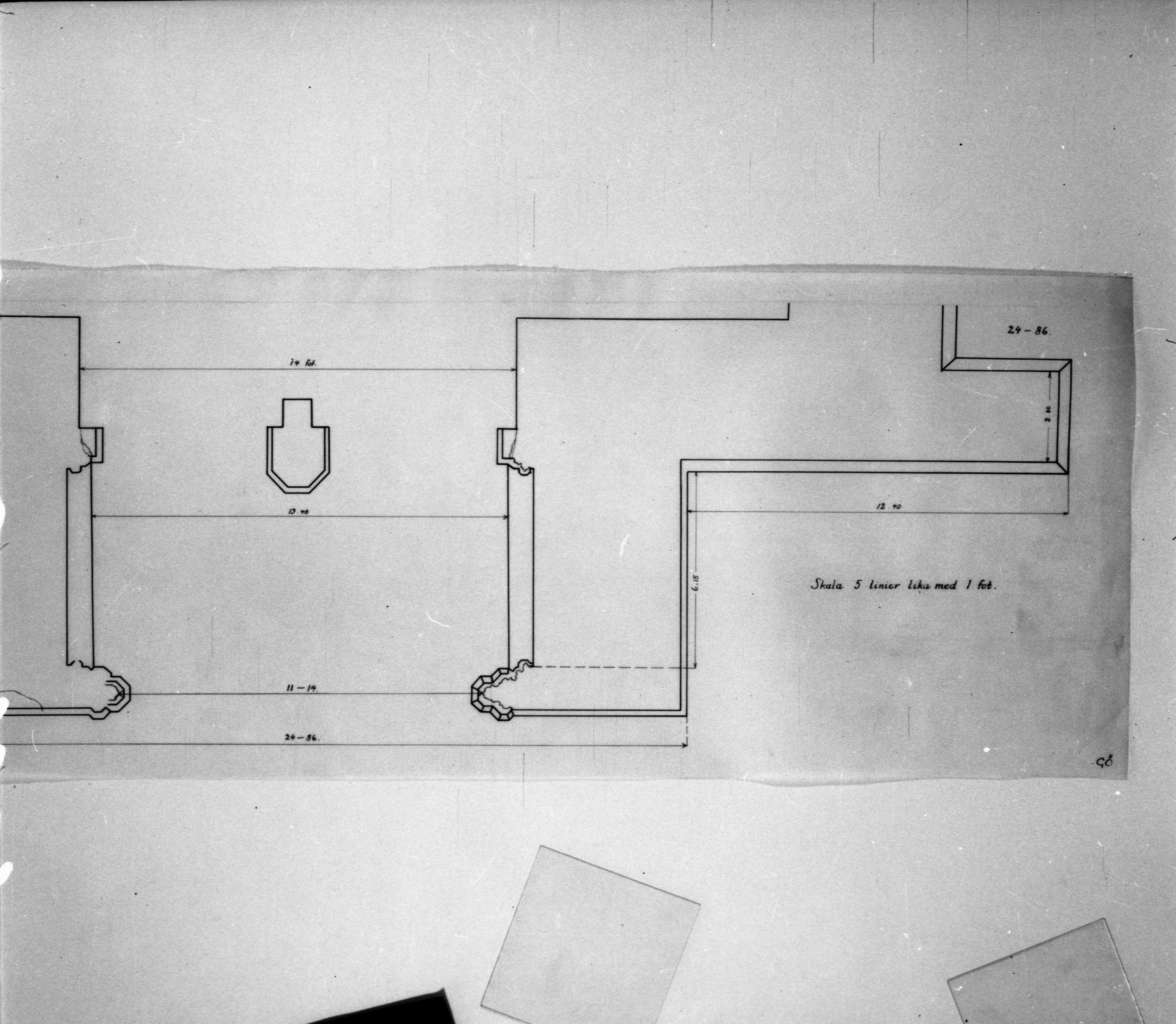 Beskrivning: Planlösning, södra förhallen. Foto efter uppmätningsritning.