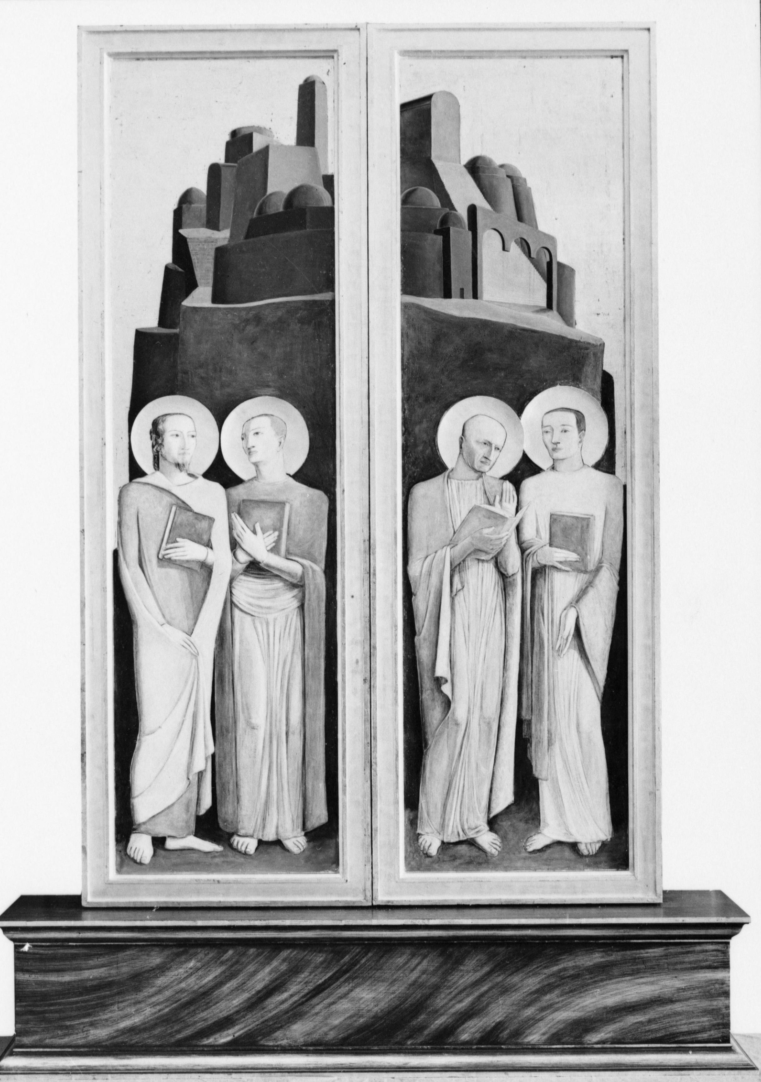 Beskrivning: Altarskåp, stängt, utfört av Sigrid Oxenstierna 1928-29.