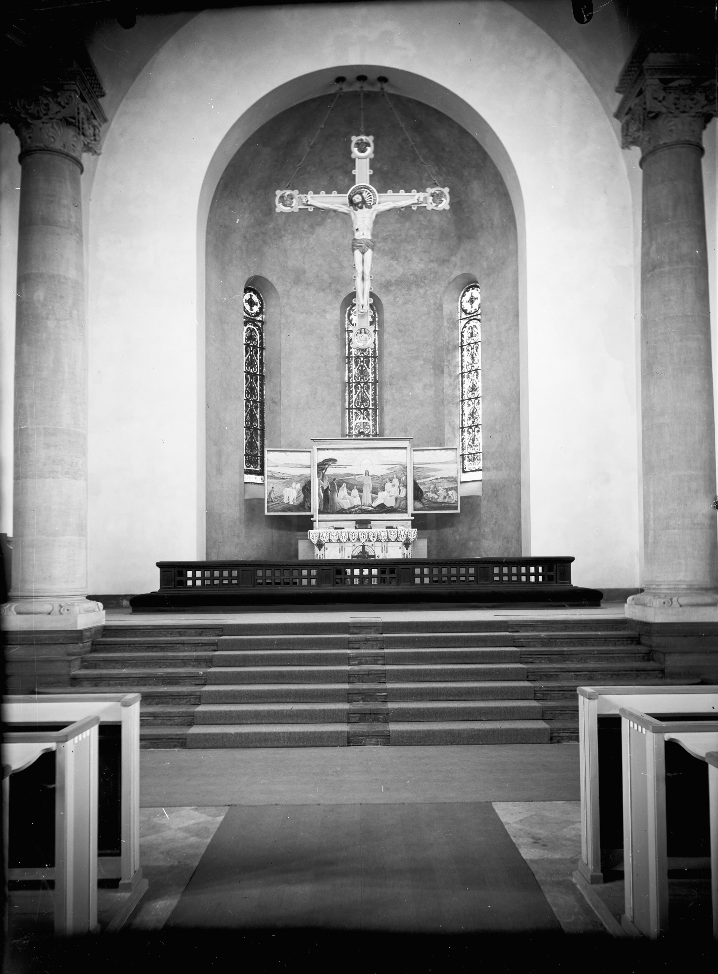 Beskrivning: Koret, altare, altarring. Efter restaurering