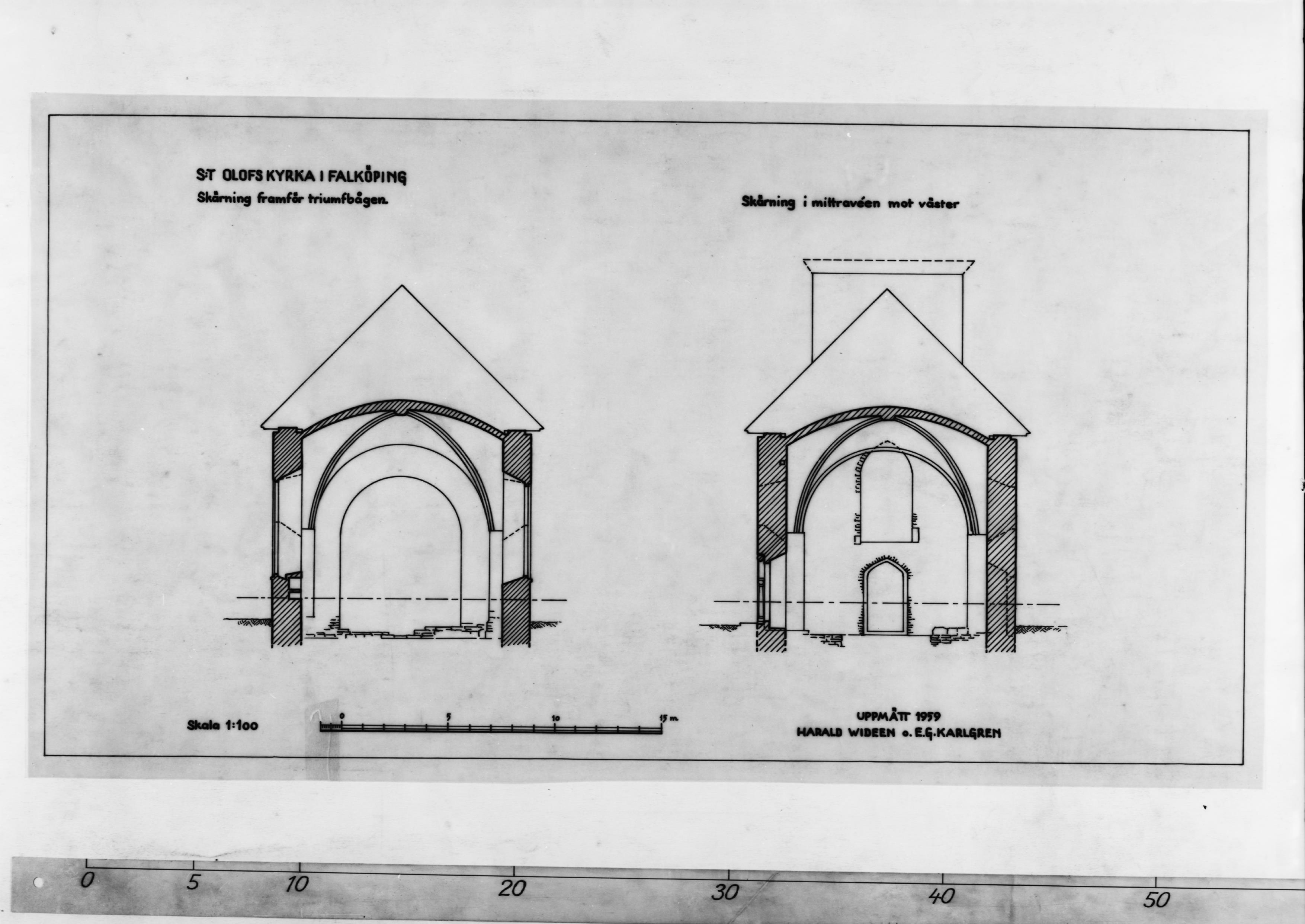 Beskrivning: Foto efter ritning, tvärsektion, med nyfunna detaljer inlagda.