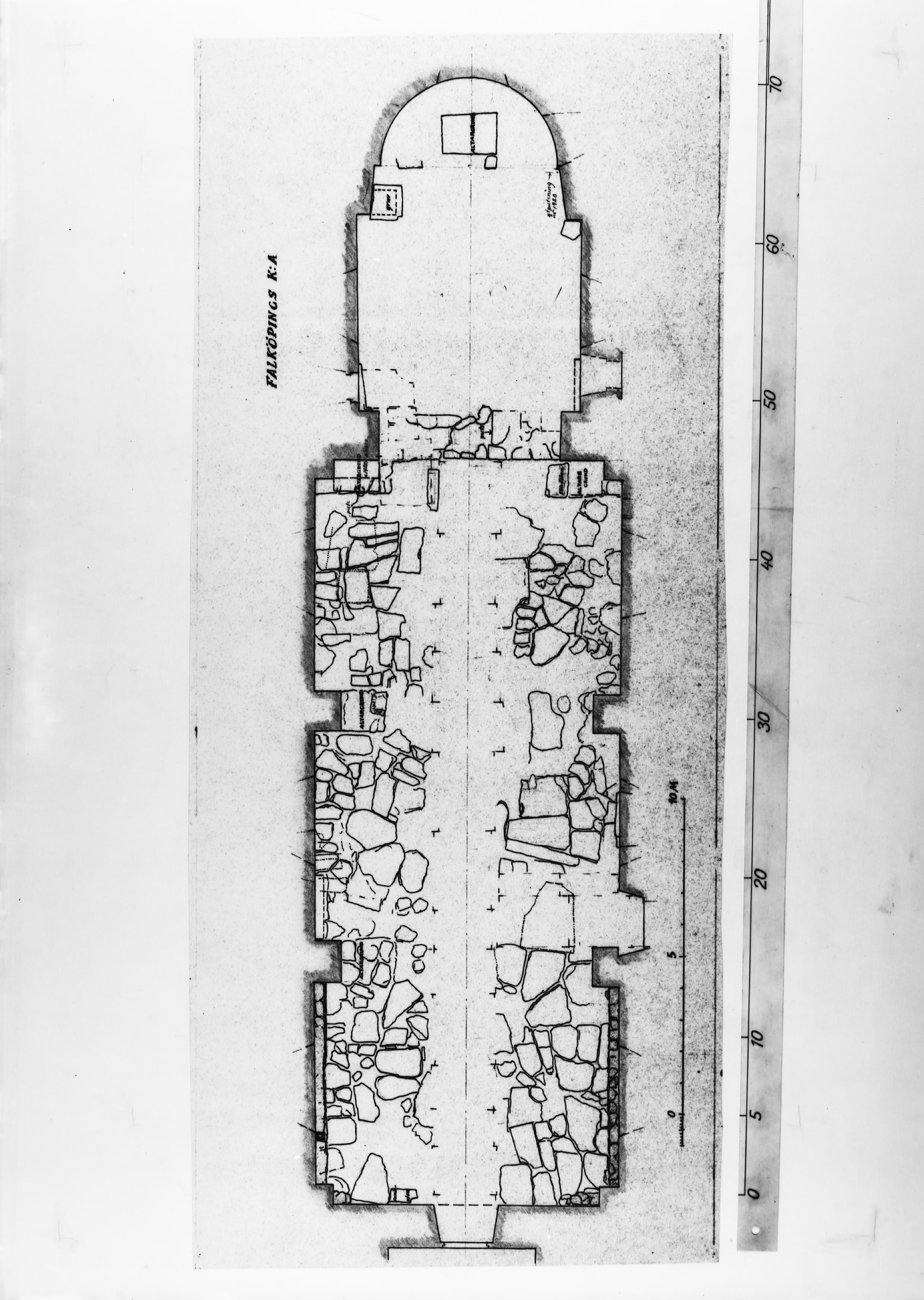 Beskrivning: Foto efter skiss över koret.
