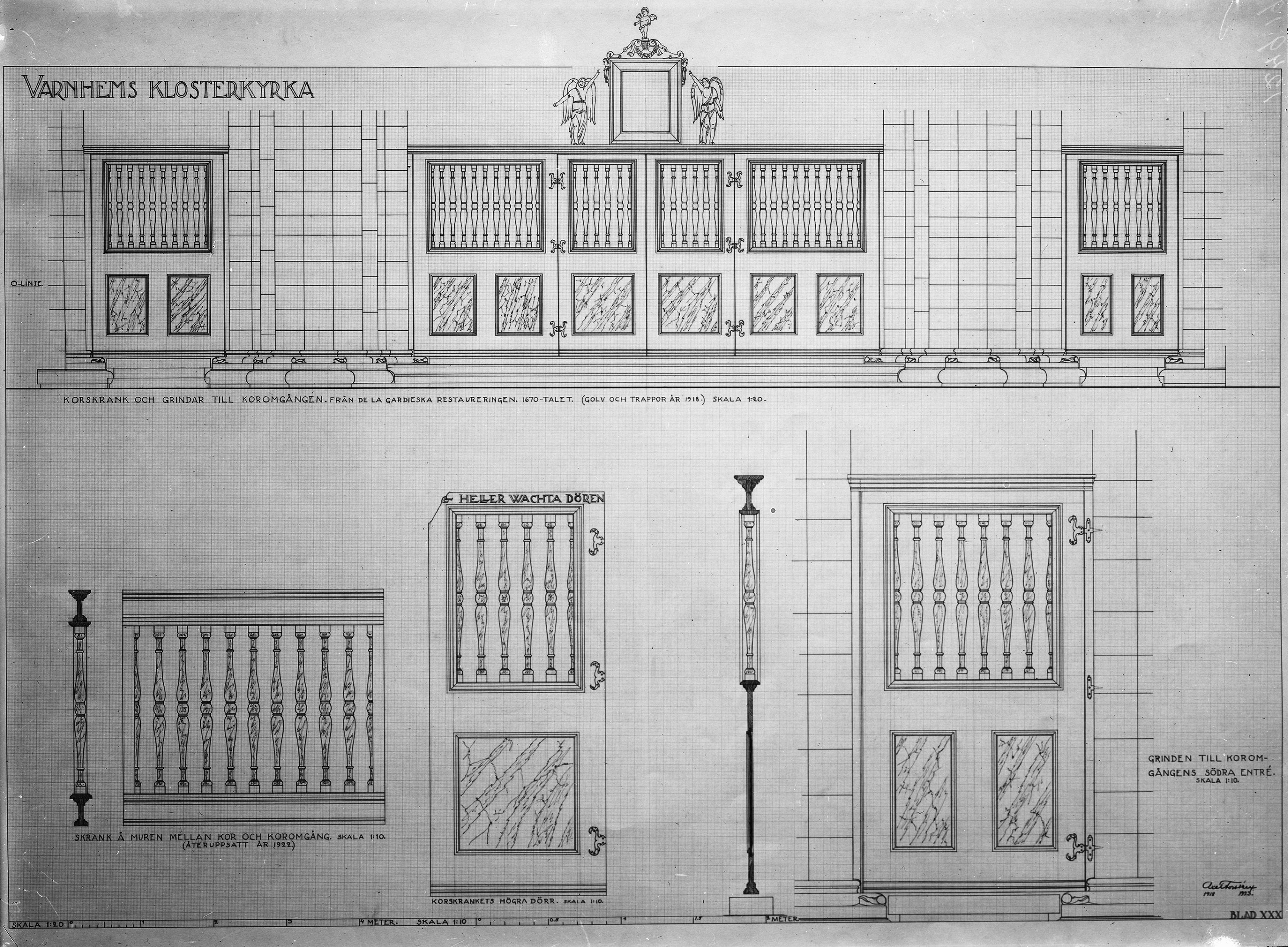 Beskrivning: Ritning av Axel Forssén, korskrank och grindar, avfotograferad.