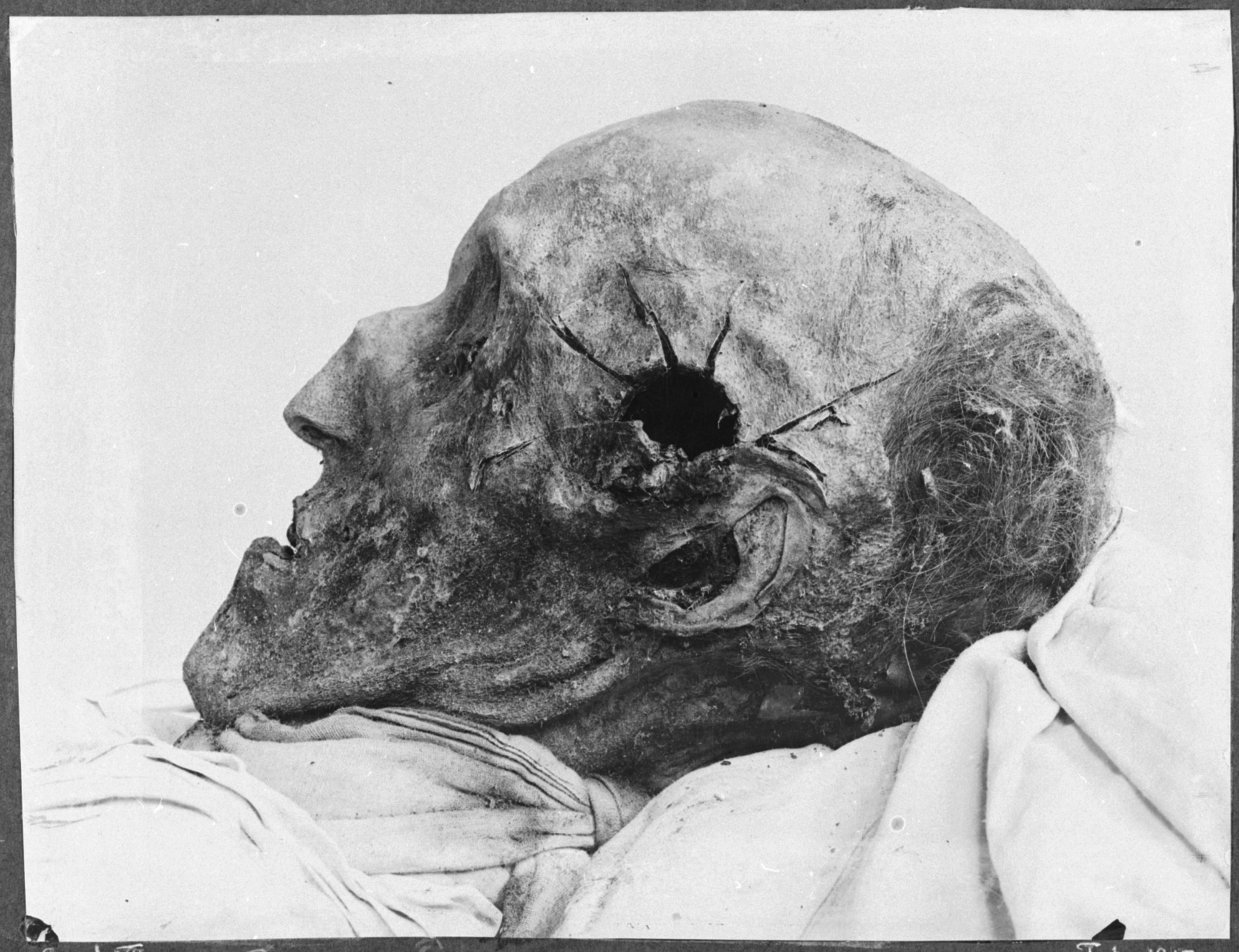Beskrivning: Karl XII:s huvud, vänstra sidan.