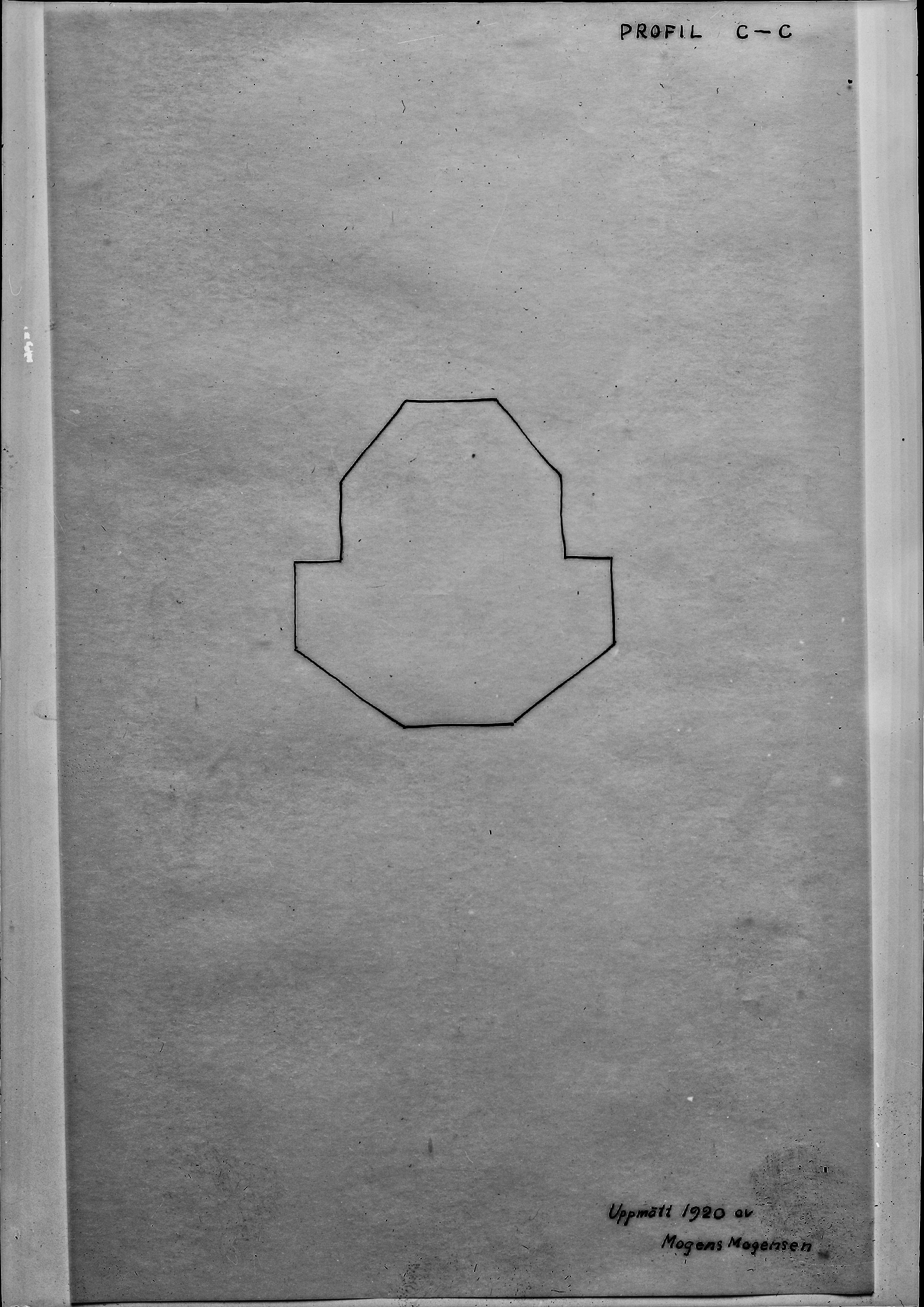 Beskrivning: Norra tvärskeppets rosettfönster, uppmätningsprofil, 1920, av Mogens Mogensen. Avfotograferad.