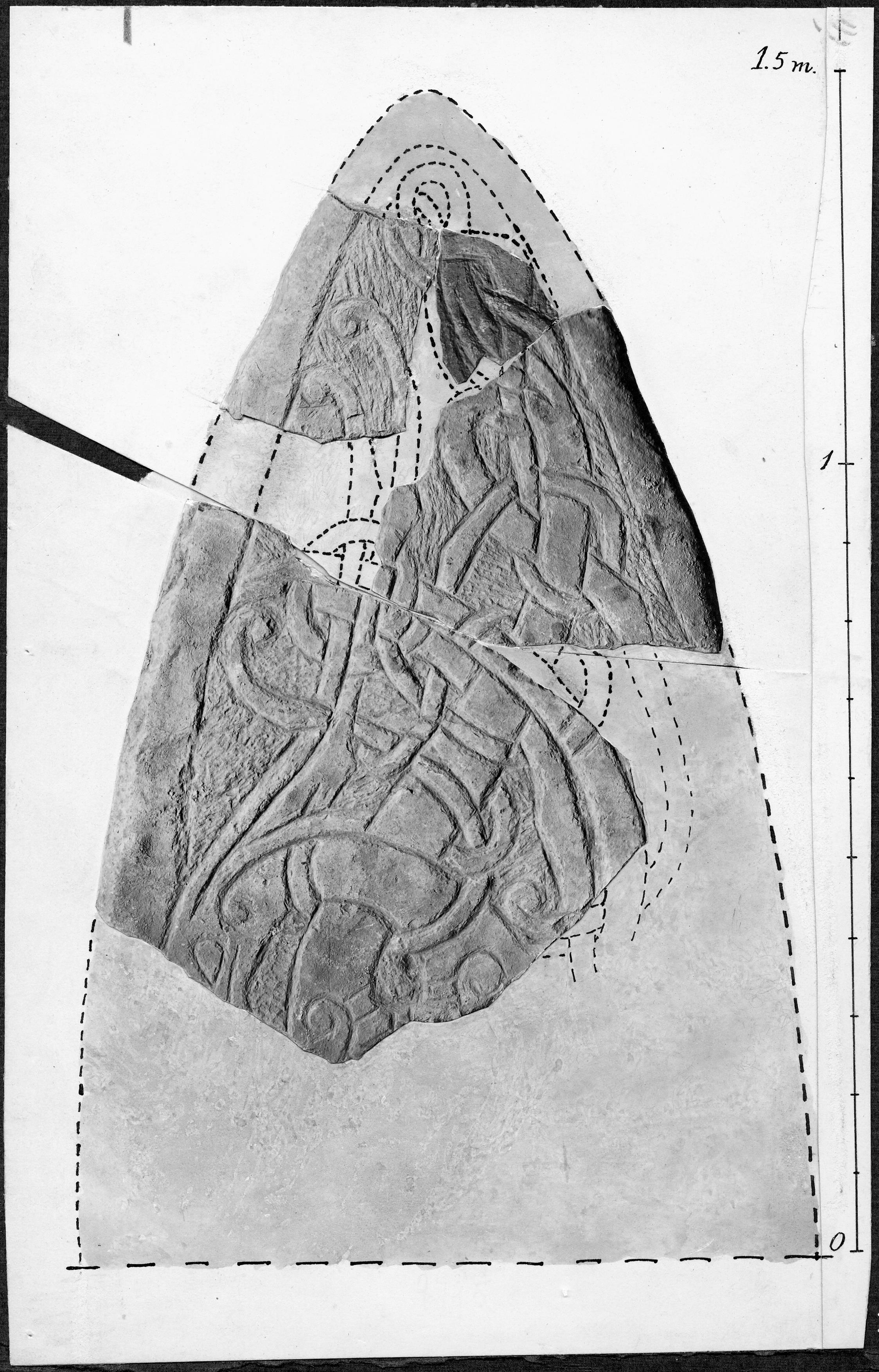 Beskrivning: Beskrivning: Gravkista, Eskilstunakistan, detalj. Foto kompletterat med teckning och måttangivelse.