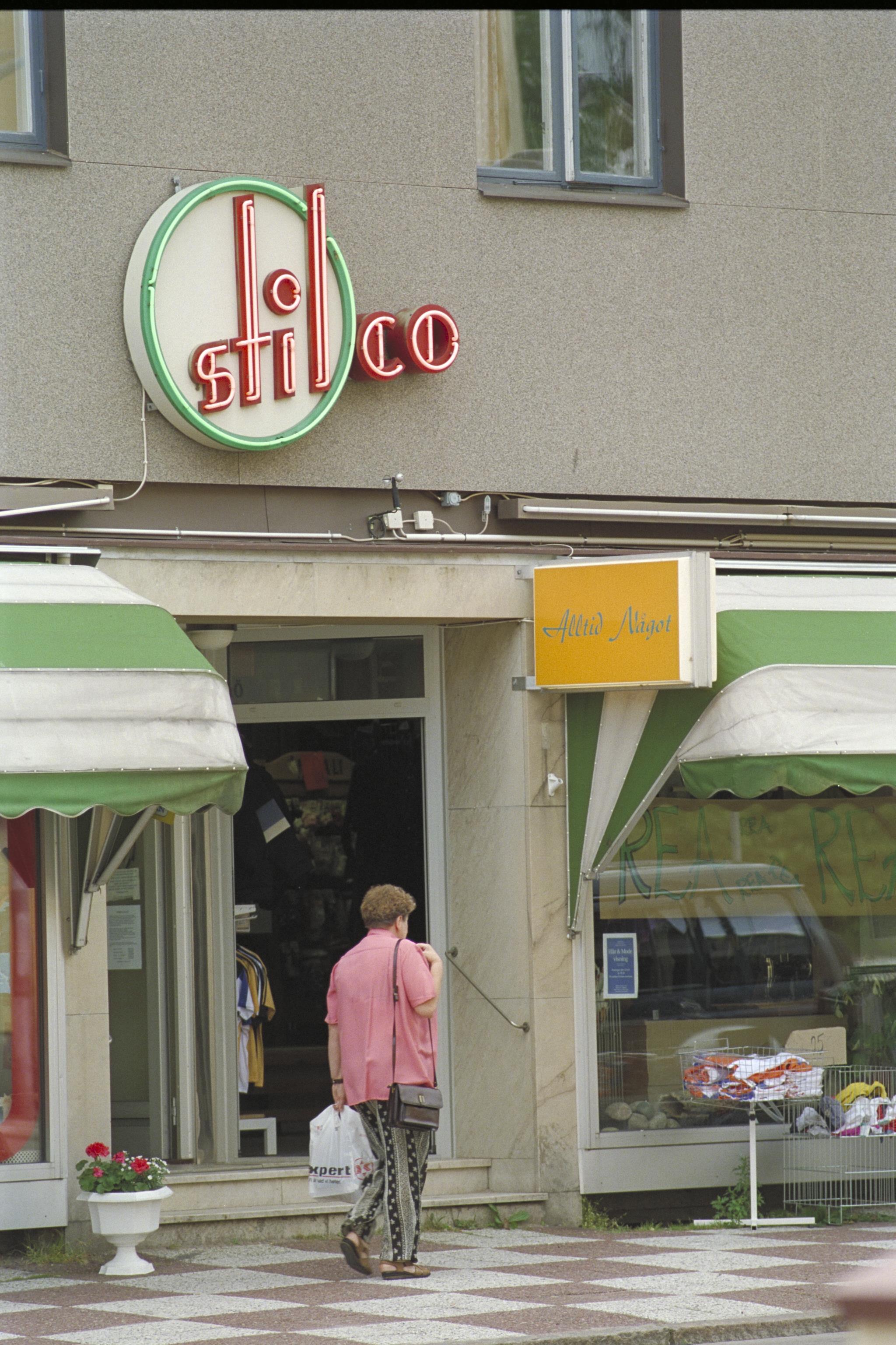 Butiksskylt i 60-talsstil vid Västerlånggatan.