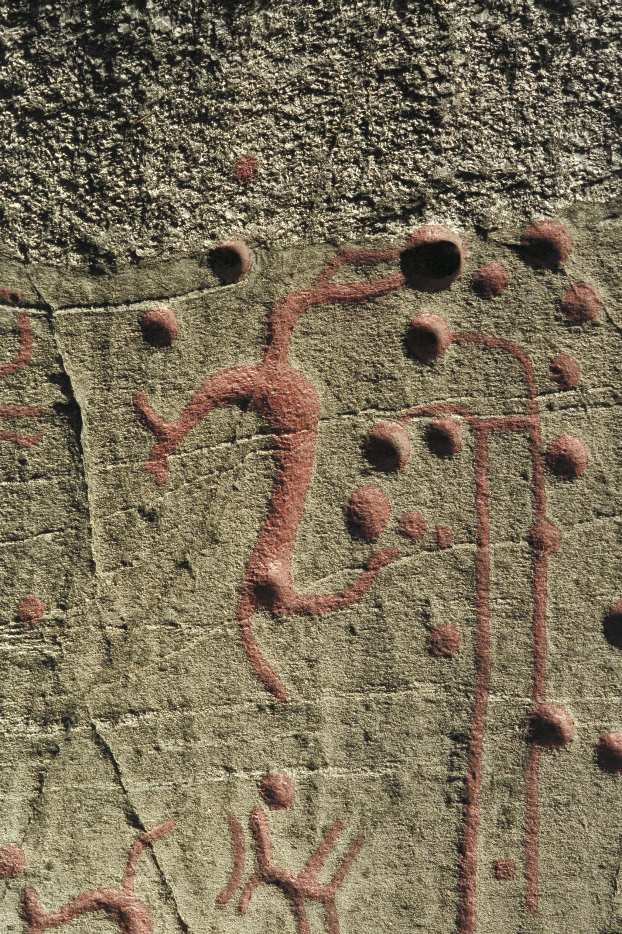 Djurfigur och älvkvarnar/skålgropar.