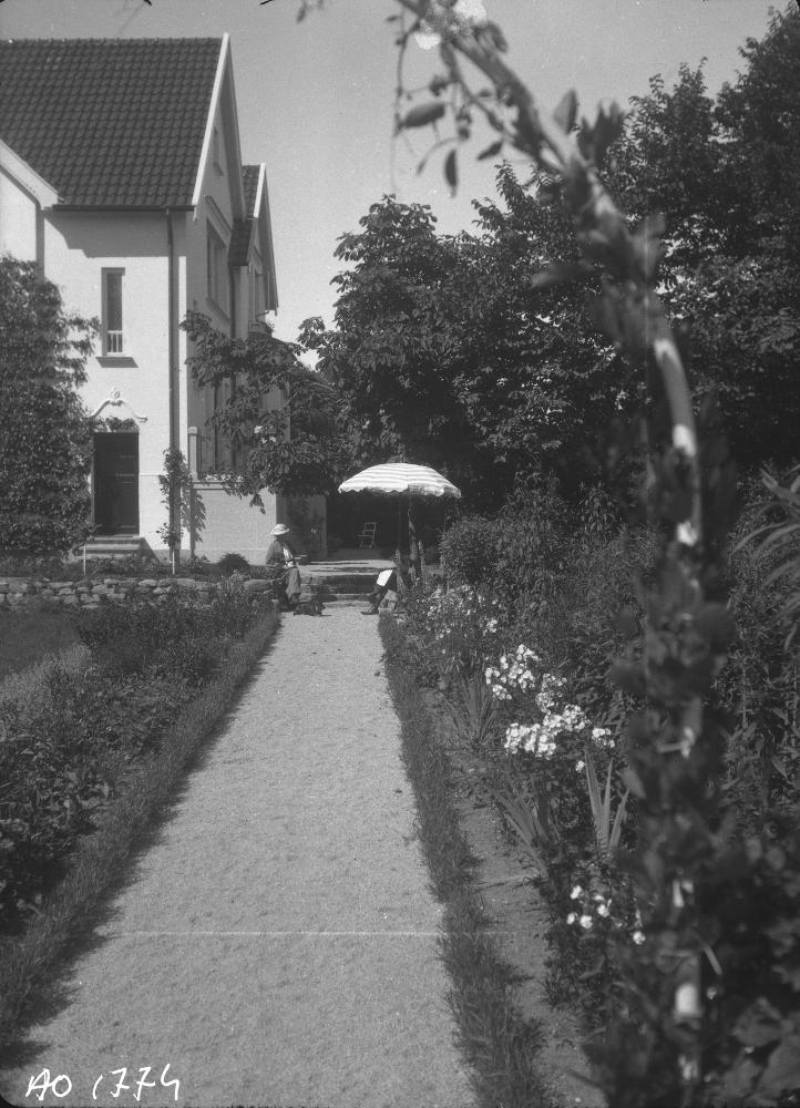 Kvinna i villaträdgården