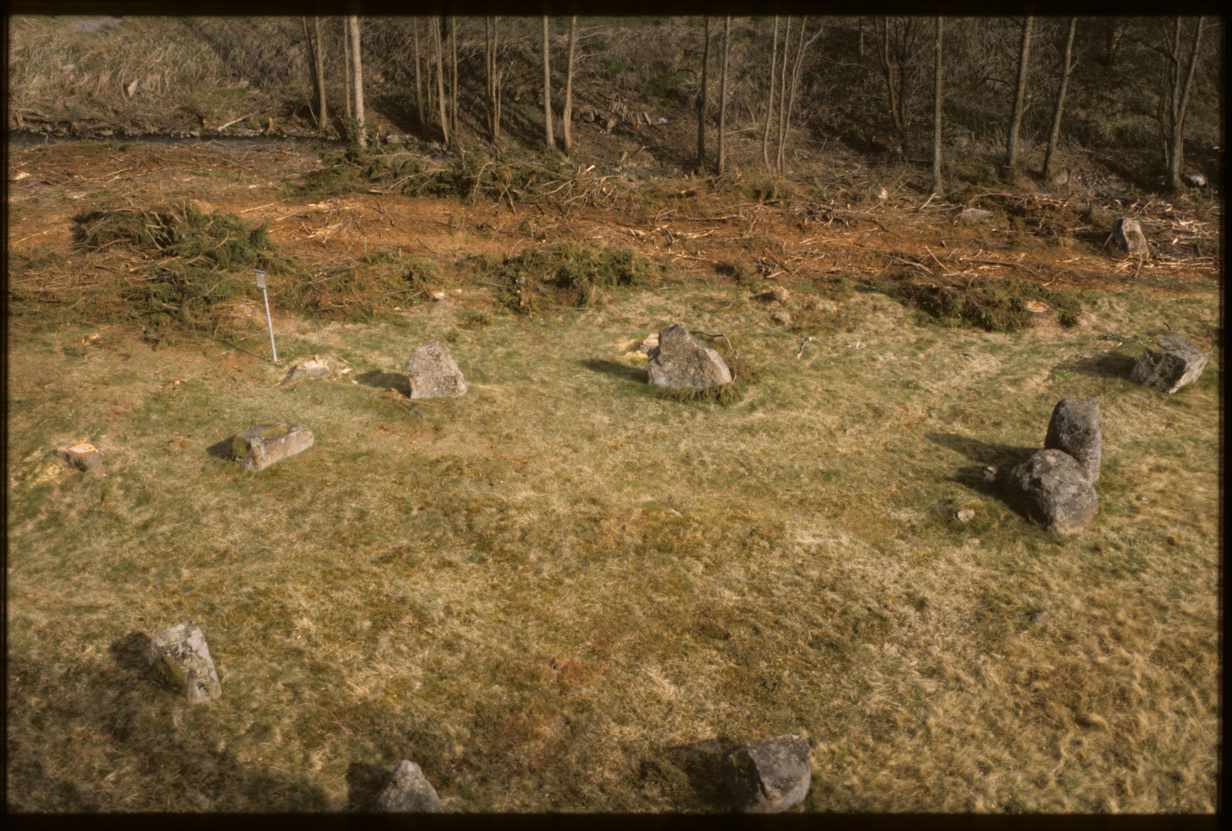 Bottna 140:1. Gravfält bestående av 2 domarringar och 6 resta stenar.