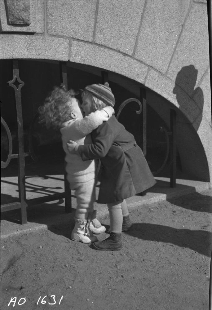 2 små barn pussas, ext.