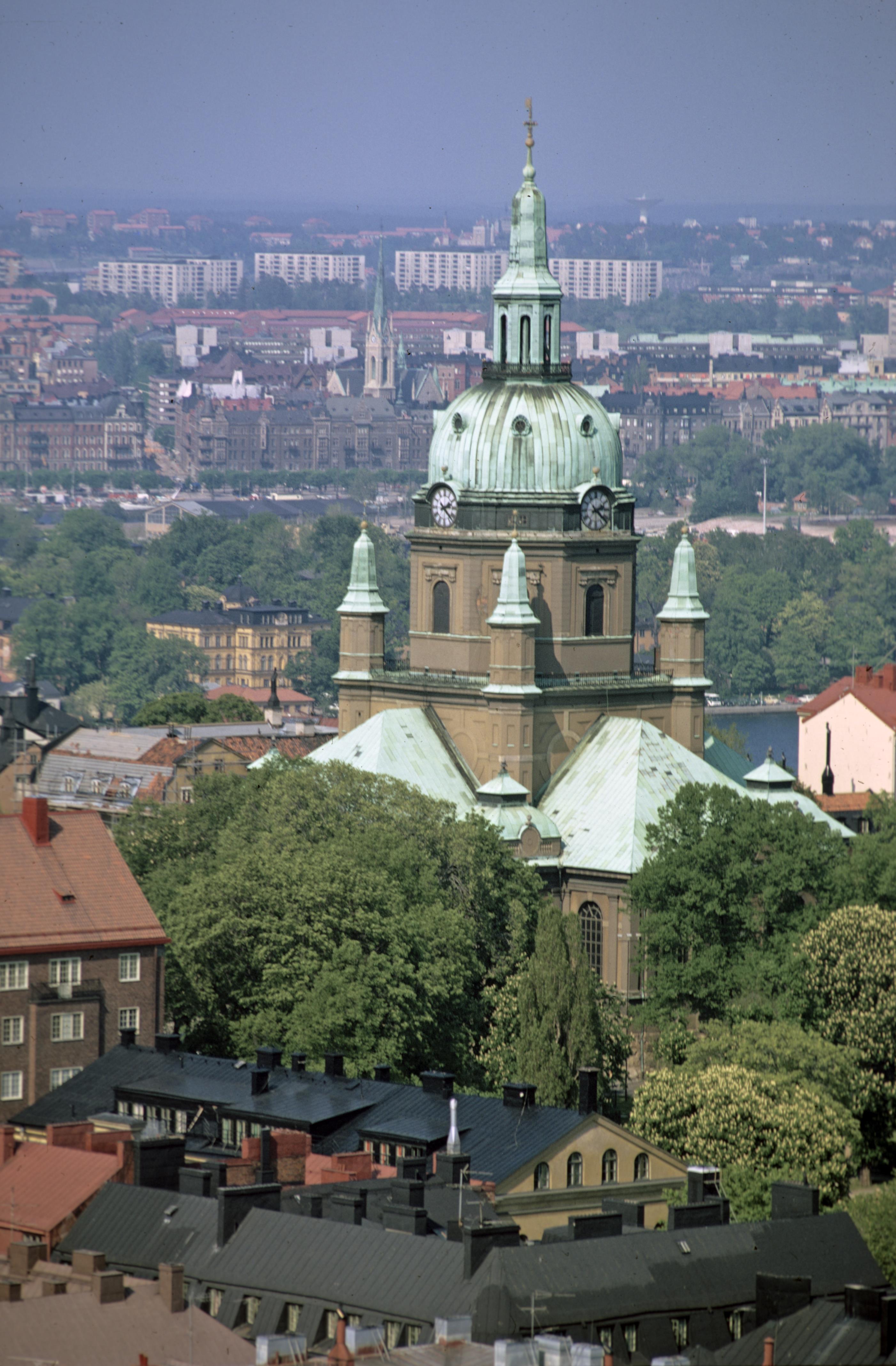 Katarina kyrka med omgivning. Bilden troligen från början av 1970-talet.