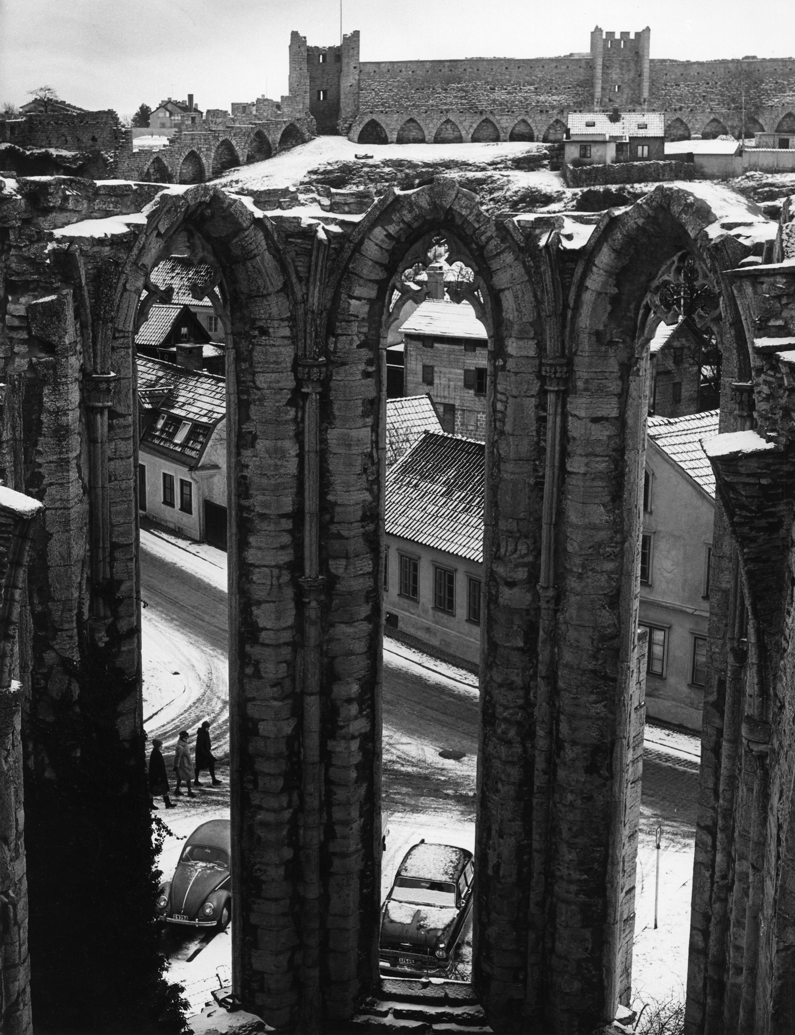 Ringmuren och Klinten från Sankt Nicolai kyrkoruin. Bilden troligen från mitten av 1960-talet.