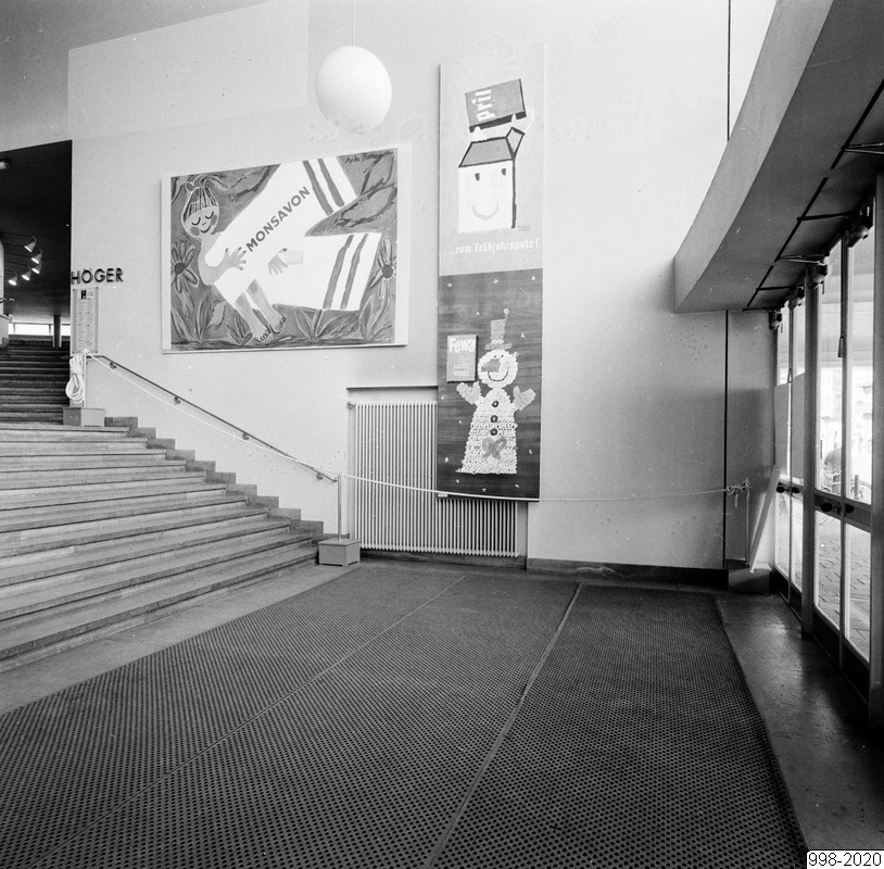 Bilden föreställer konserthusets entré . Till vänster glasparti (?) till höger trappa. På väggen i bakgrunden konstverk.