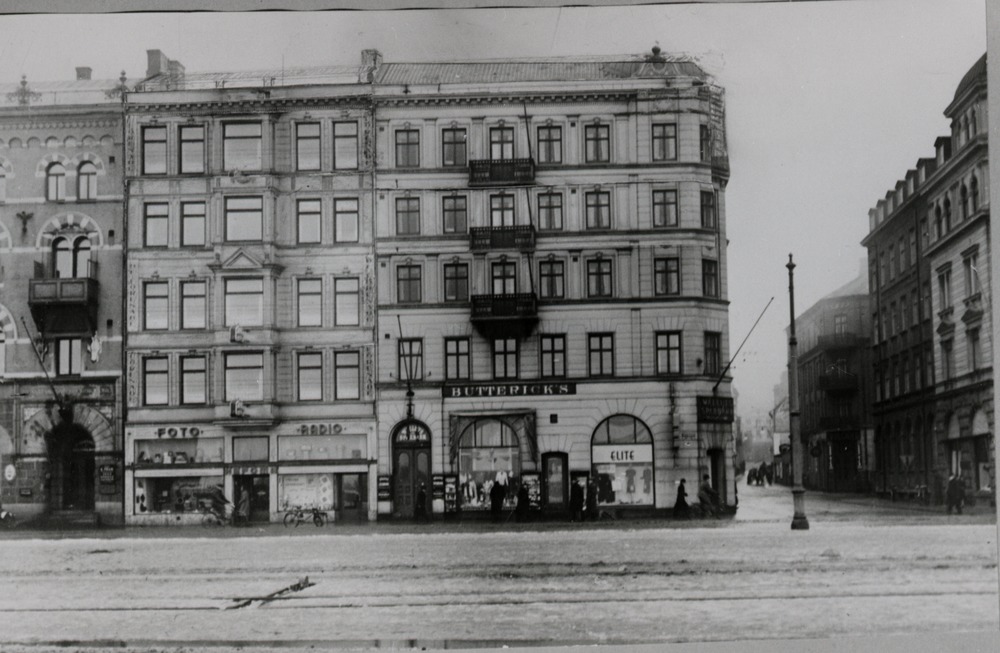 En delvis fiktionell kompositbild som troligen använts som grund för en potentiell ombyggnad. Här avbildas Hefomas fastighet tillsammans med den som ligger till höger med ytterligare våningar. Notera till exempel den kopierade balkongen, eller texten Hefoma hastighetens vänstra sida som dyker upp på flera våningar.