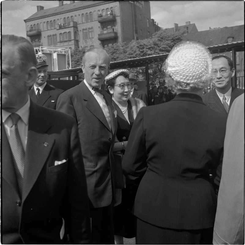 Bilden föreställer en man och en kvinna i trekvartsfigur bland andra människor. I bakgrunden byggnad. Kvinnan bär en pälsschal.