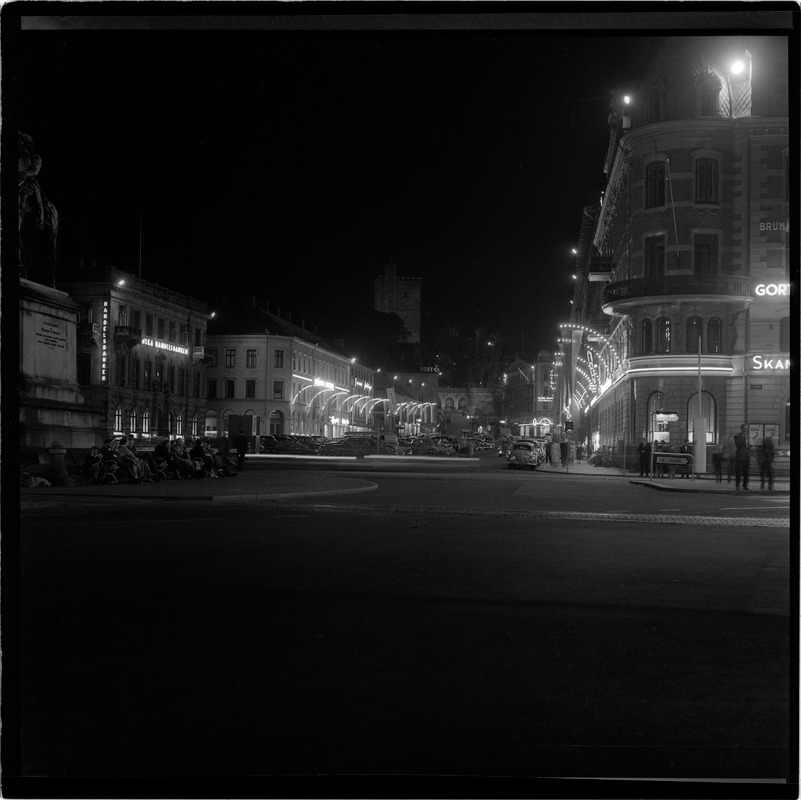 Bilden föreställer Stortoget från Stenbock statyn och österut. Kärnan i bakgrunden. Till vänster bänkar där det sitter människor.