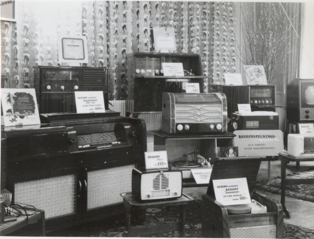 Fotografi som är taget på radio avdelningen i Hefoma på Järnvägsgatan 3. Tagen före ombyggnaden 1957-58.