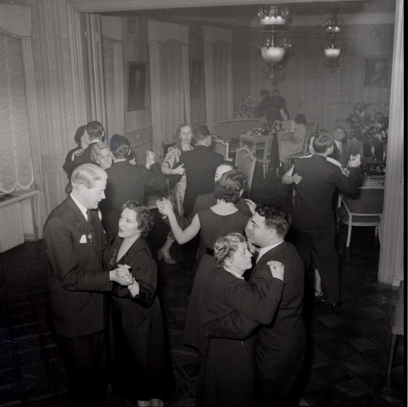 Fotografi som avbildar Hefomas 50-årsjubileum, här en dans. Bland de dansande paren ser vi Gösta Ohnell med hans moder Elisabet Ohnell (längst ner till höger), Sture Claesson (längst ner till vänster).