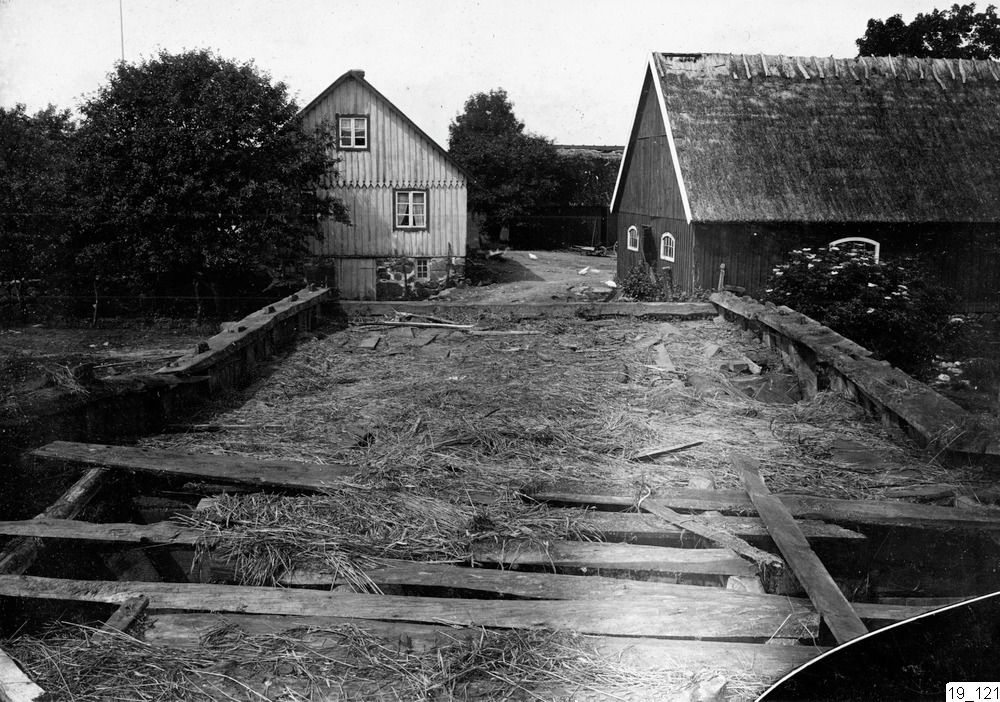 Lillarydsgården på sin ursprungliga plats innan flytten till Fredriksdals friluftsmuseum.