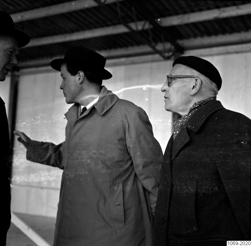 Bilden föreställer tre herrar fotograferade i trekvsrtsfigur stående under ett tak.