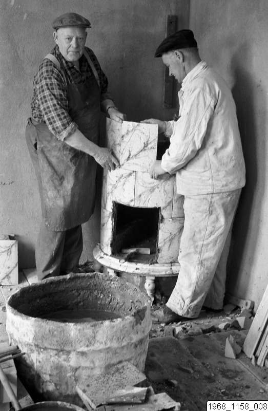 Kakelugnsbygge vid renoveringen av herrgårdsbyggnaden.