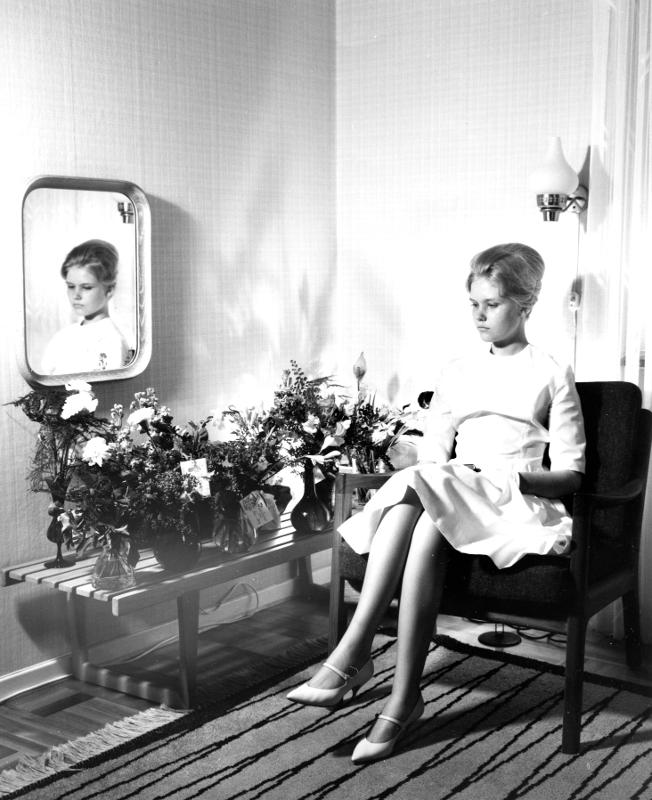 Större svartvitt fotografiskt porträtt, helfigur.sittandes.