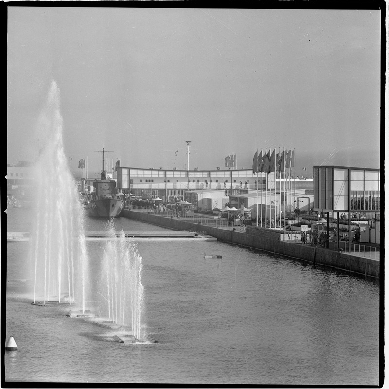 Bilden föreställer en vy över Parapeten till höger. I förgrunden hamnen med fontän.