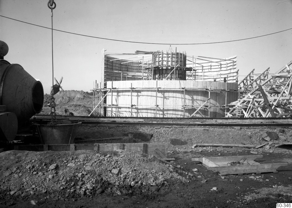 Beskrivning: Vattentornet vid Fredriksdal under uppförande