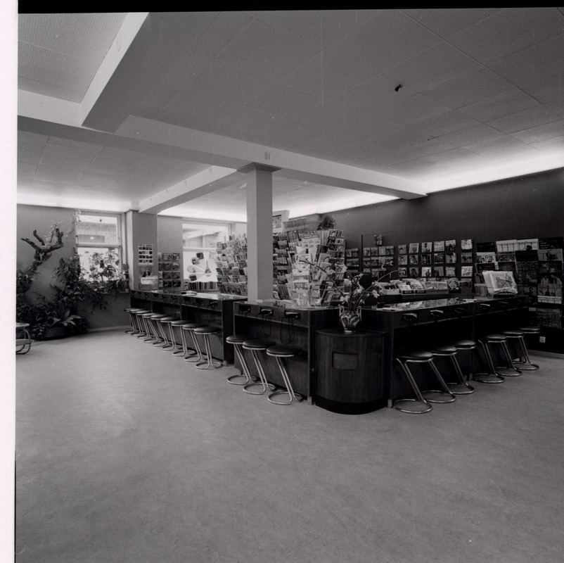 Fotografi som avbildar Hefomas affär på Järnvägsgatan 3 strax efter ombyggnaden 1957-1958. Här ser vi grammofonavdelningen längst inne i affären.