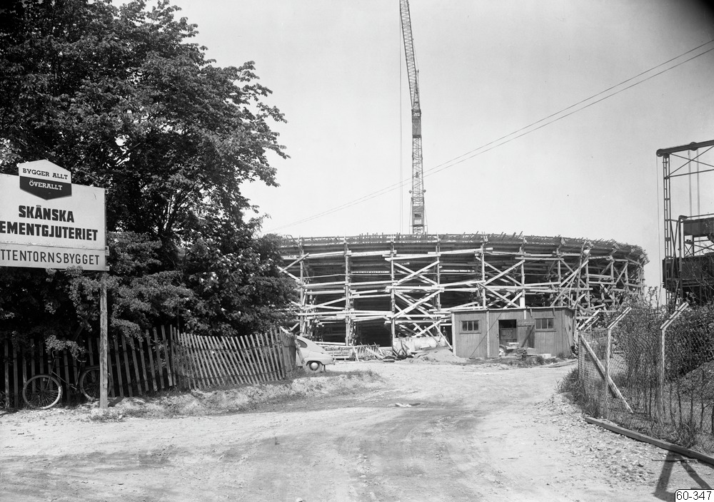Beskrivning: Vattentornet vid Fredriksdal under uppförande