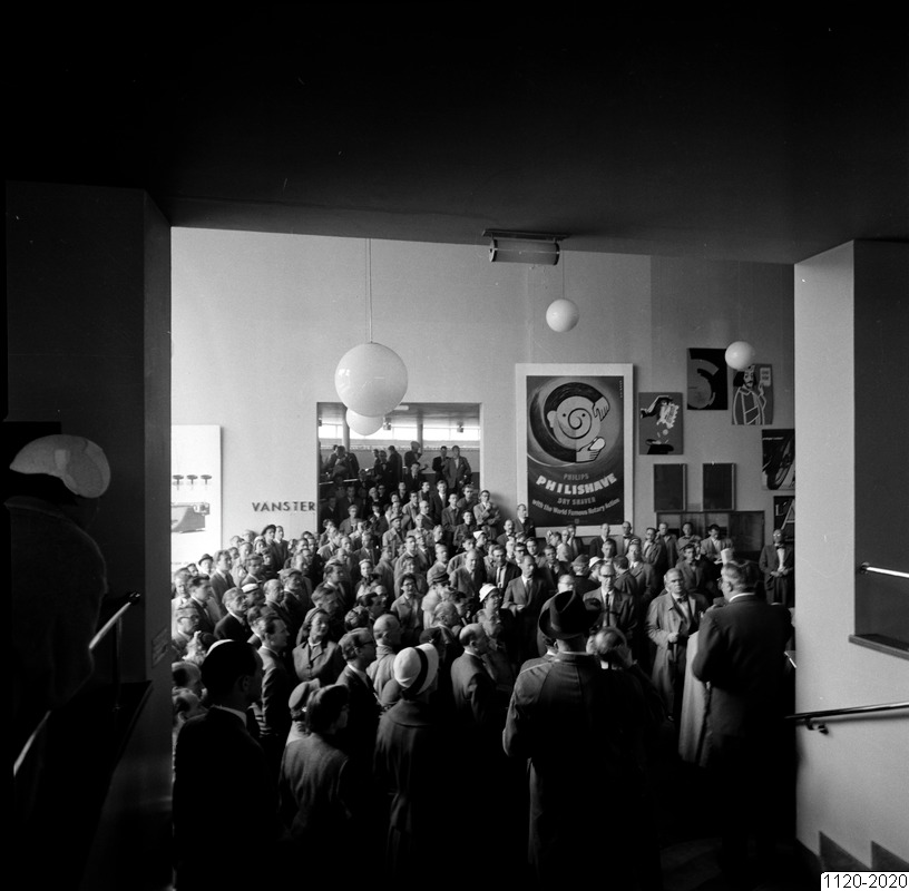 Bilden föreställer en vernissage i koncerthusets foaje.