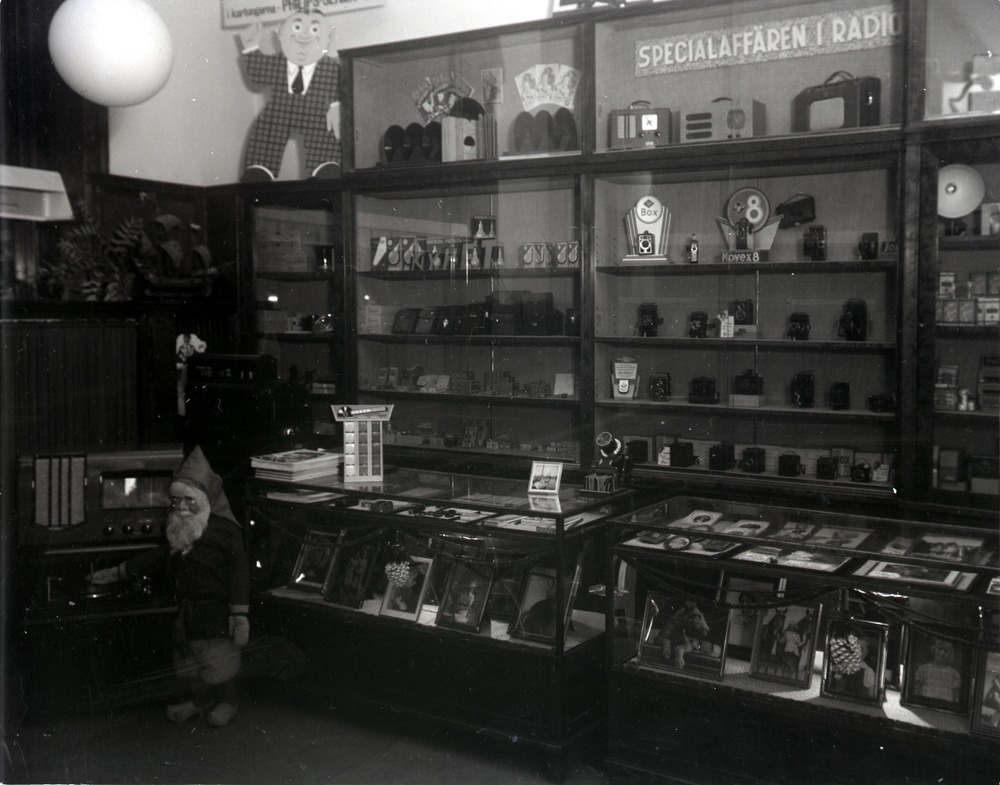 Fotografi som avbildar den juldekorerade insidan av Lafoma affären på Rådhustorget 1 i Landskrona, en av Hefomas filialer i staden. Bilden är tagen den 20 december 1941.