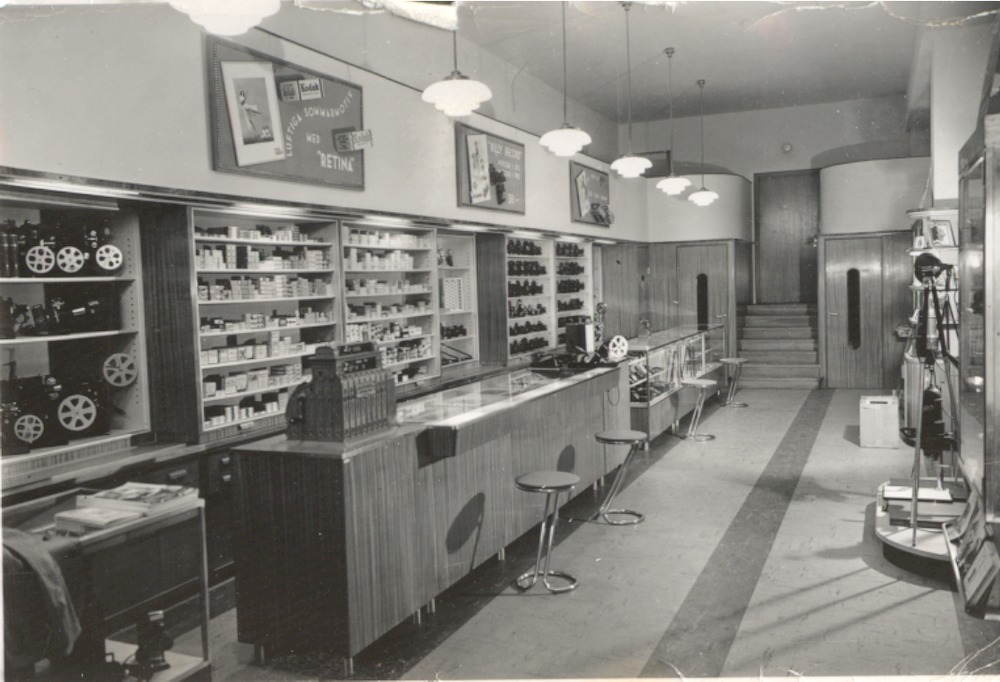 Beskrivning: Fotografi som avbildar fotoavdelningen i Hefomas affär på Järnvägsgatan 3. Tagen före ombyggnaden av affären 1957-58.