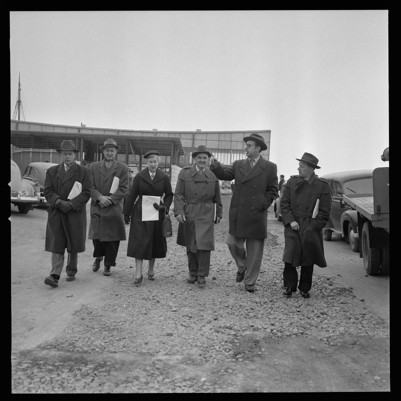 Bilden föreställer en grupp herrar och en dam stående på Parapetenområdet. Några med mapp under armen.