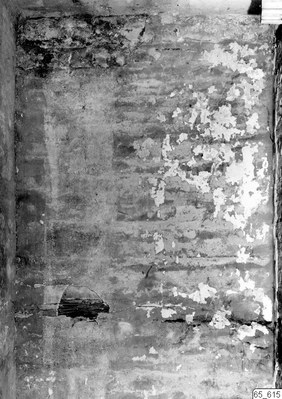 Corps de logi, bottenvån. kontoret, västra väggen, parti mellan skorstensstocken och norra väggen, Obs! marmorering.