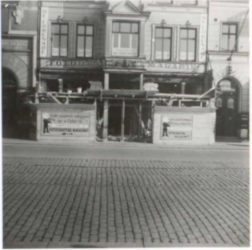 Fotografi som avbildar Hefomas affär på Järnvägsgatan 3 under dess ombyggnad.