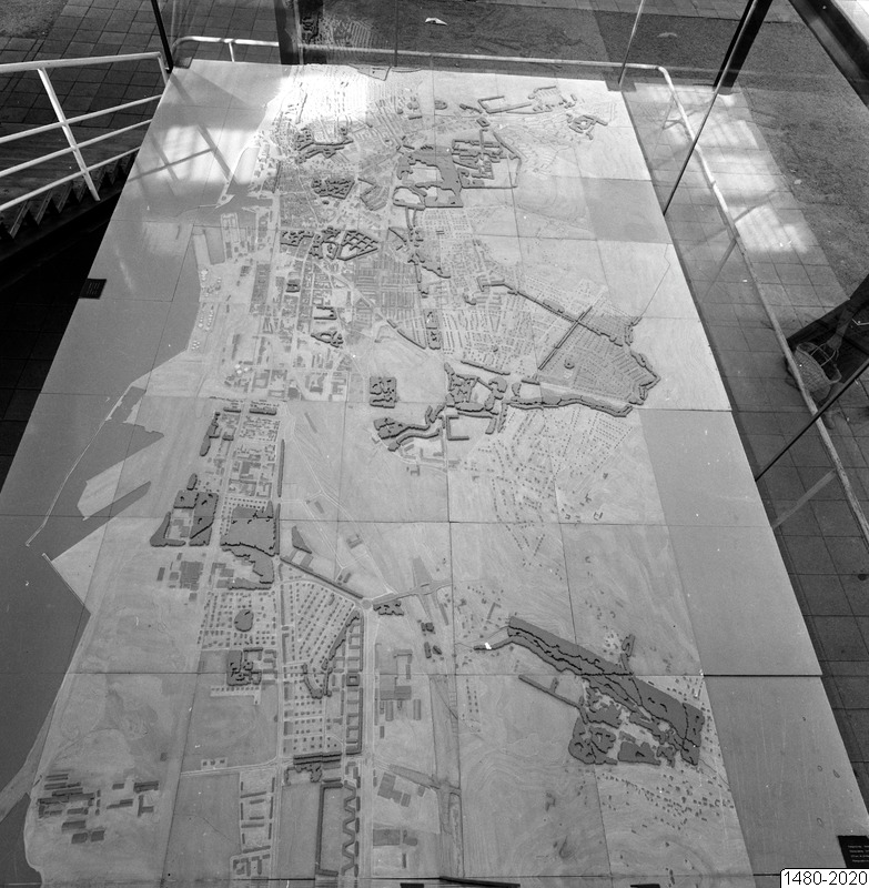 Bilden föreställer en bord med av pla karta över Helsingborg.