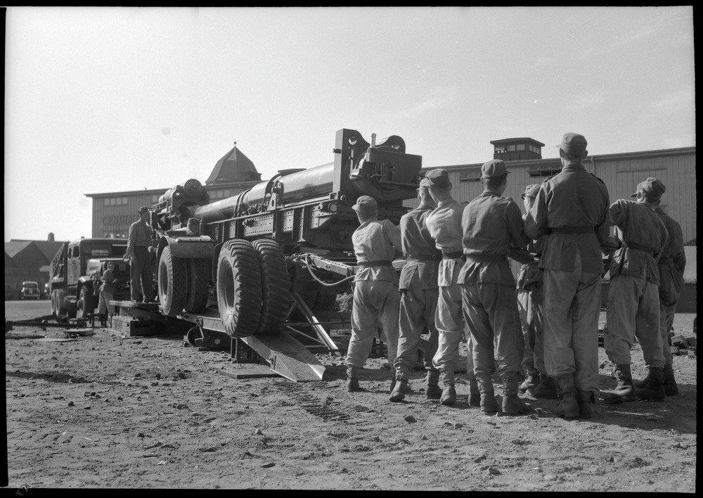 Bilden föreställer militärfordon med en grupp militärer framför.