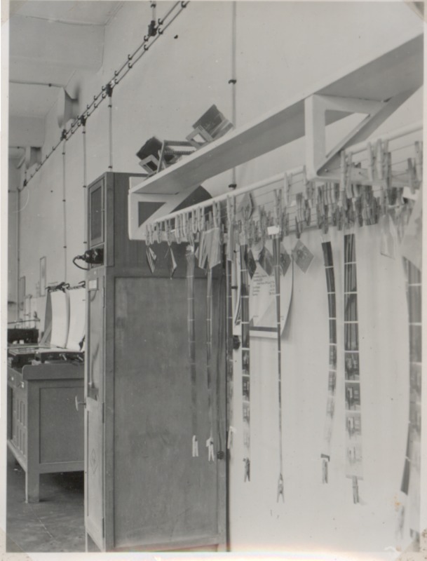 Fotografi taget av Sture Claesson som avbildar ett fotolaboratorium, kanske ett av Hefomas labb eller möjligtvs ett labb som Claesson besökt på en av sina resor. När bilden är tagen är okänt.