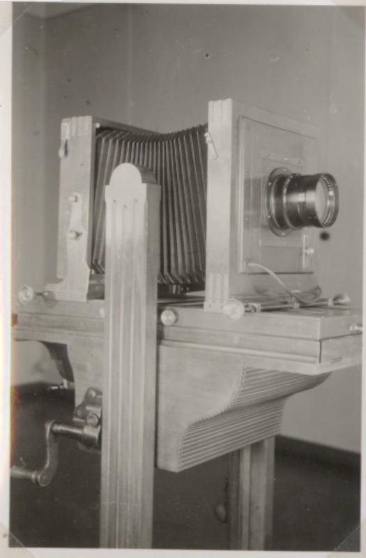 Fotografi av Sture Claesson som avbildar en ateljékamera. När och var bilden är tagen är okänt.