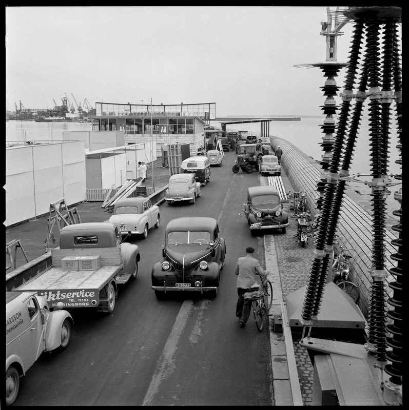 Bilden föreställer vägen ute på Parapeten. PÅ vägen står bilar och en lastbil samt en cykel med cyklist. I bakgrunden paviljong.