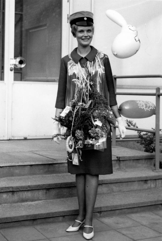 Svartvitt fotografiskt porträtt, helfigur, ståendes.