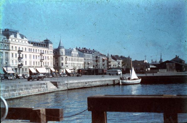 "Ved Havnen. Helsingborg 1939". Järnvägsgatan och inre hamnen mot söder.